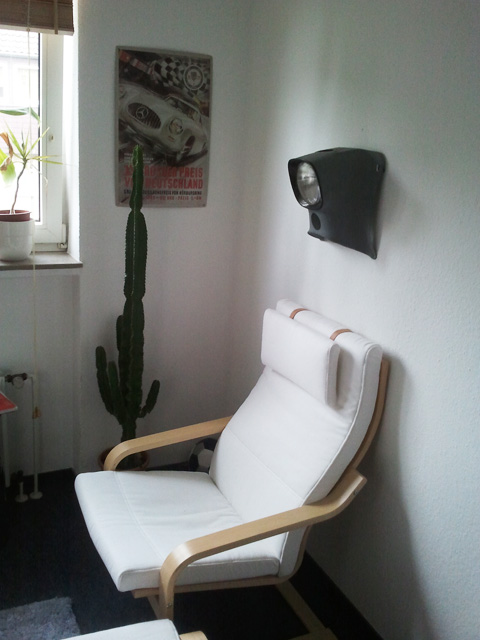 Endlich mal die Lampenmaske installiert. Gefällt mir ganz gut, aber vielleicht lackier ich die noch. Weiß jemand, was ich brauche, damit ich die Birne mit Strom aus der Steckdose betreiben kann, möglichst günstig? oder sollte man eher eine Wandlampe umbauen/einbauen? Dachte erst an LEDs, aber LED passt so gar nicht zu 'ner Schwalbe...