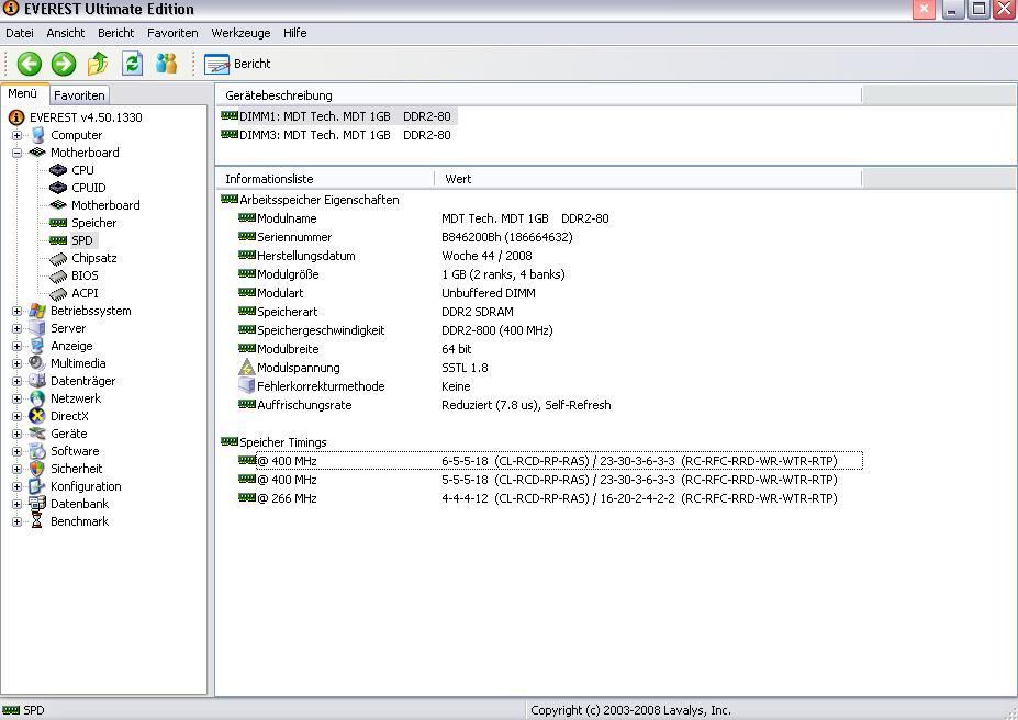 Arbeitsspeicher: 2x1024MB Kingston 800Mhz