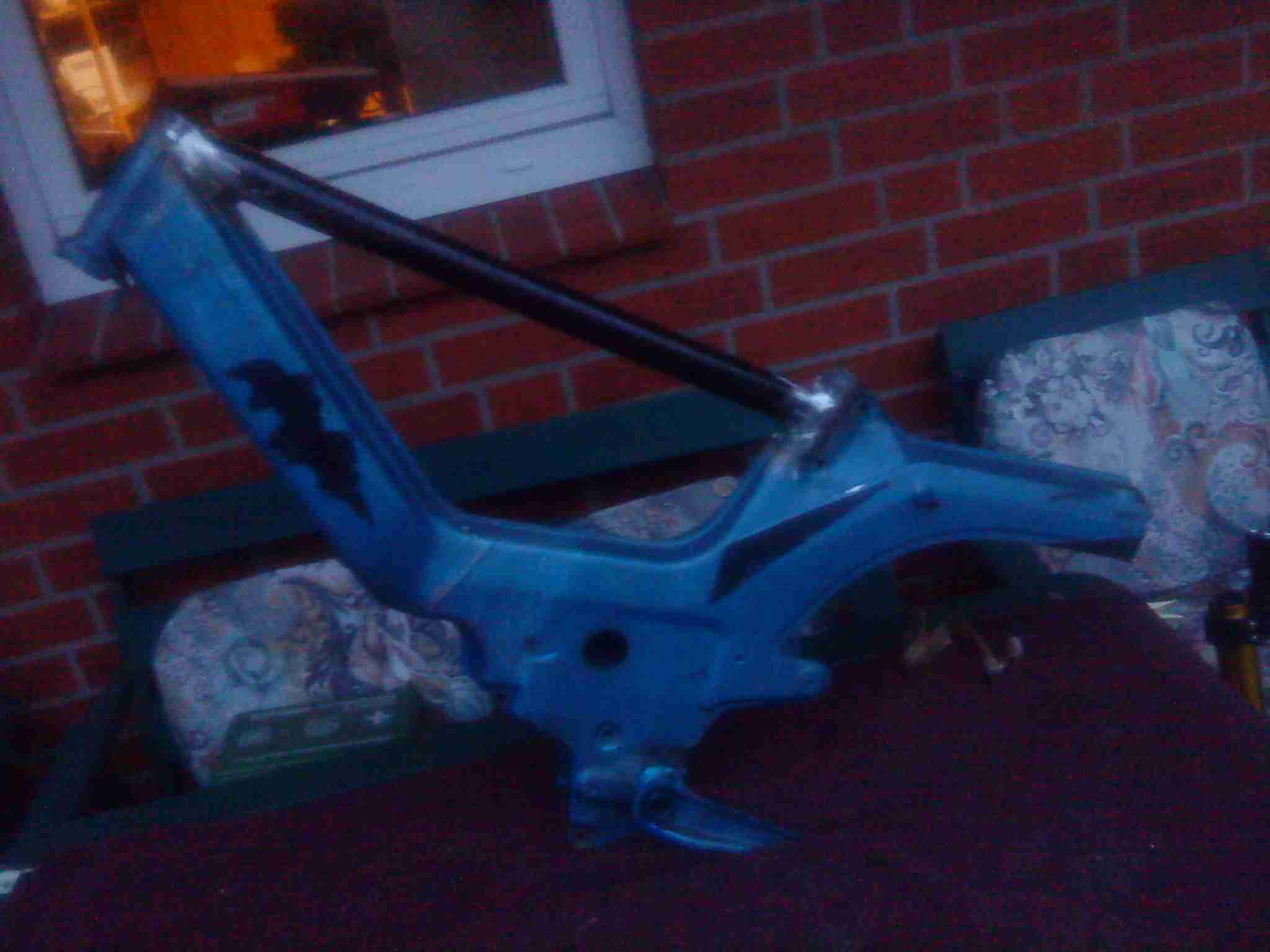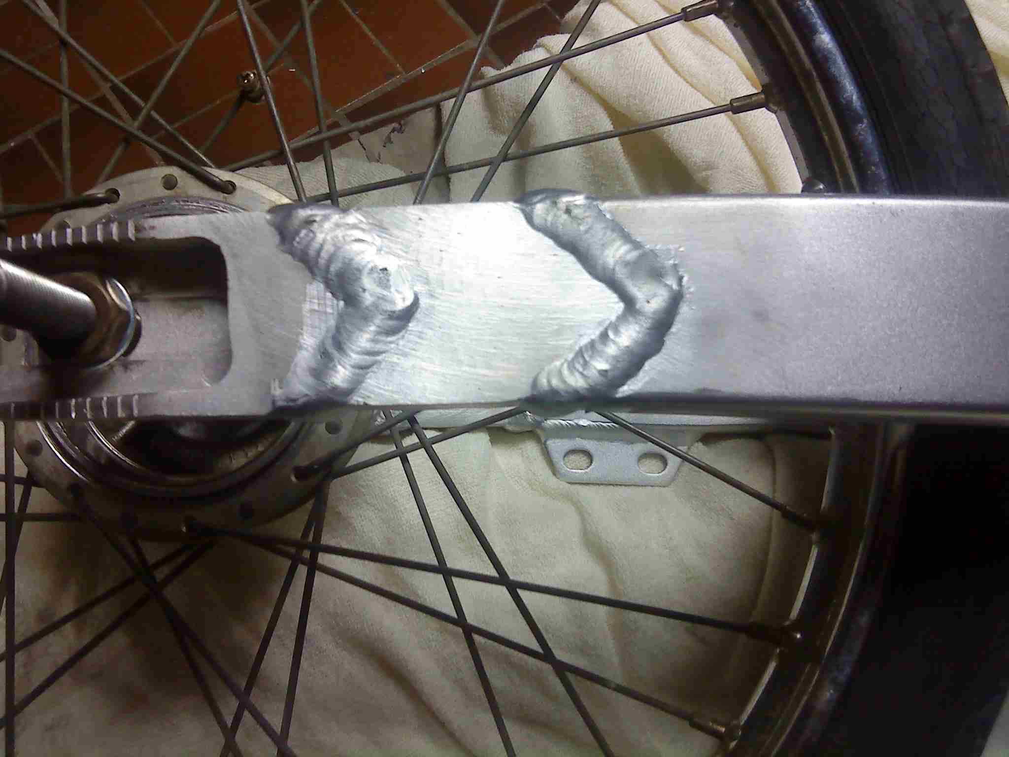 Das, was sich erst rausstellen muss- ob die schwinge von der Thumbstar hält- sie ist halt um 8,5 cm verlängert worden und mit TIG wieder zusammengeschweisst worden....