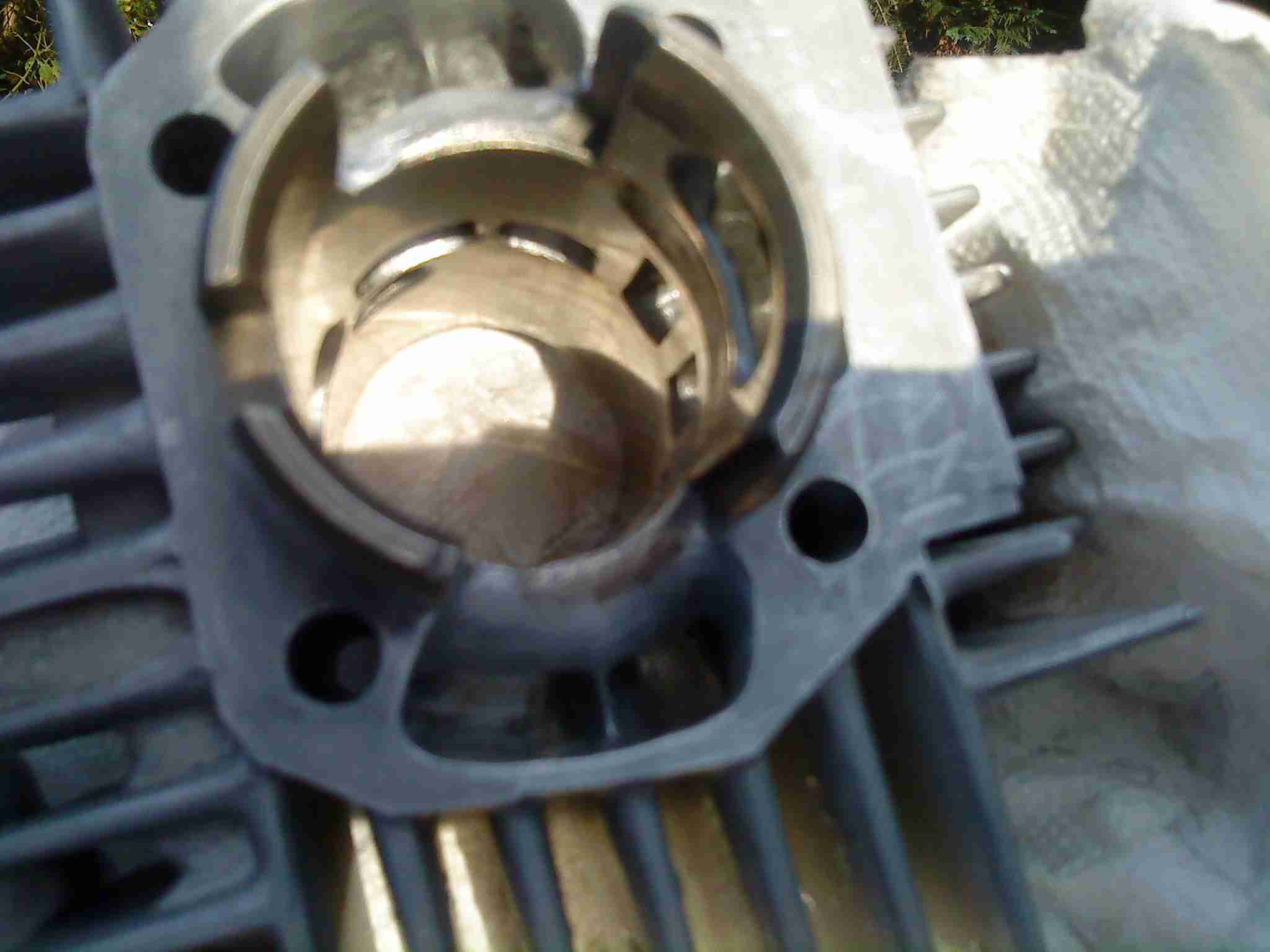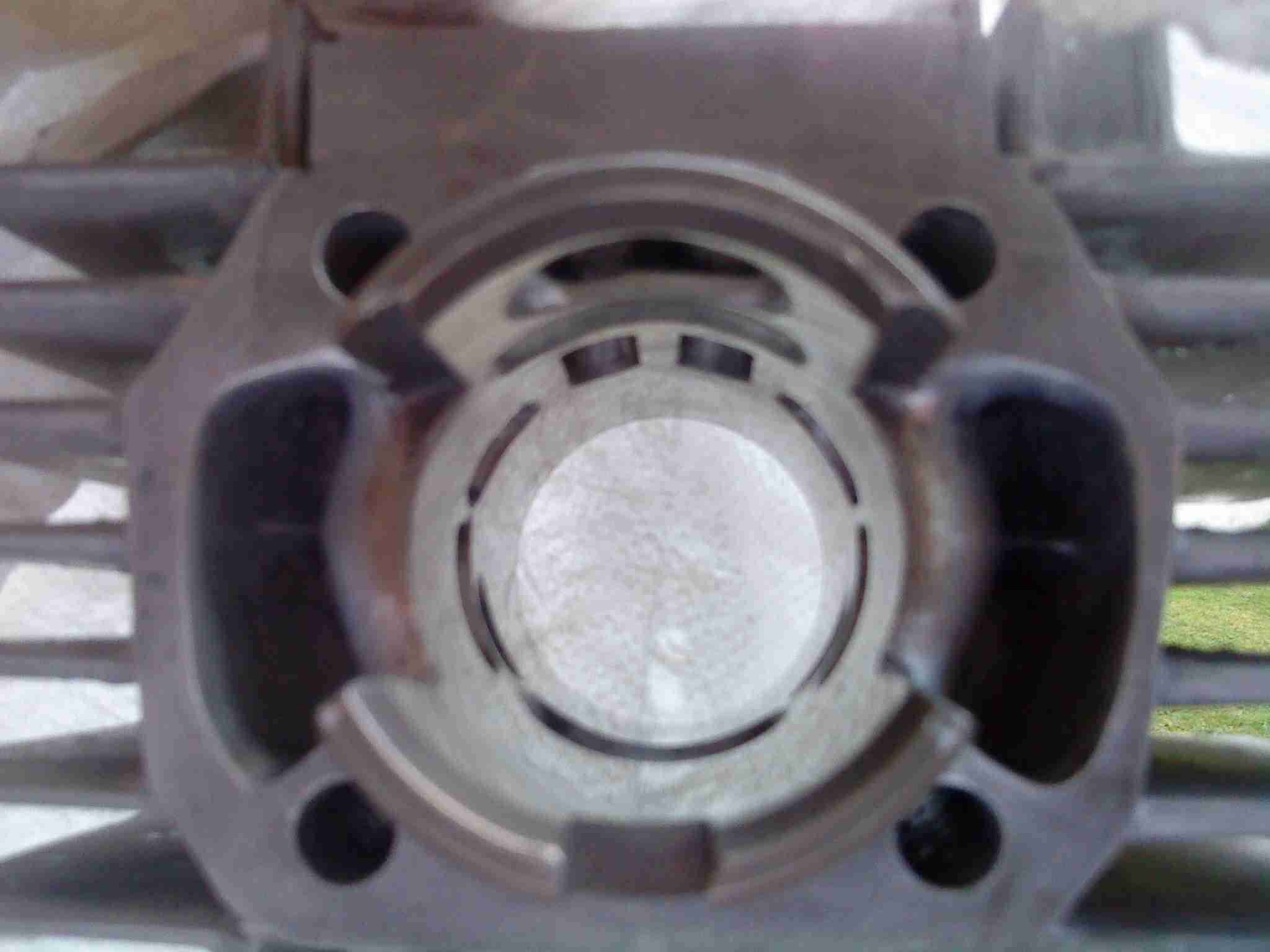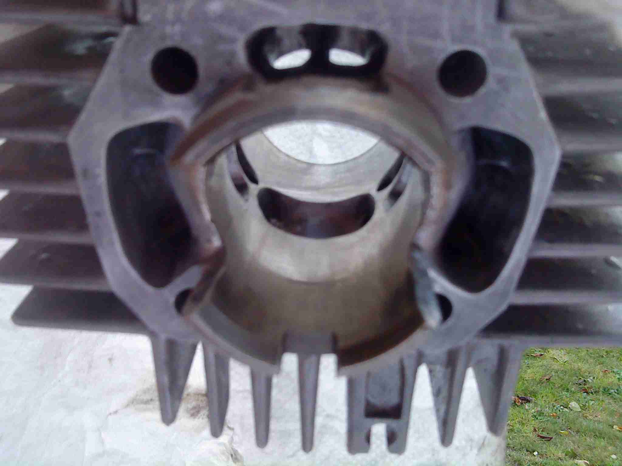 Der Athena von Uwe ( Aerodacyl) wurde von mir als Muster angesehen- den Auslaß habe ich solange vergrößert, bis irgendwann der Kolbenring gebrochen ist- das war etwas zuviel des guten. Deshalb nun die Nebenauslässe. Zufrieden bin ich mit dem Athena nicht gewesen- der eine ÜS-Kanal ist zu groß, der andere viel zu klein, und die Ringnut des Kolbens läuft genau über den einen ÜS- alles nicht so dolle. Beim P1 gefallen mir die ÜS-Kanäle auch nicht sonderlich- der Steg sitzt viel zu weit oben und ist zu dick- der muß erstmal noch gewaltig bearbeitet werden.