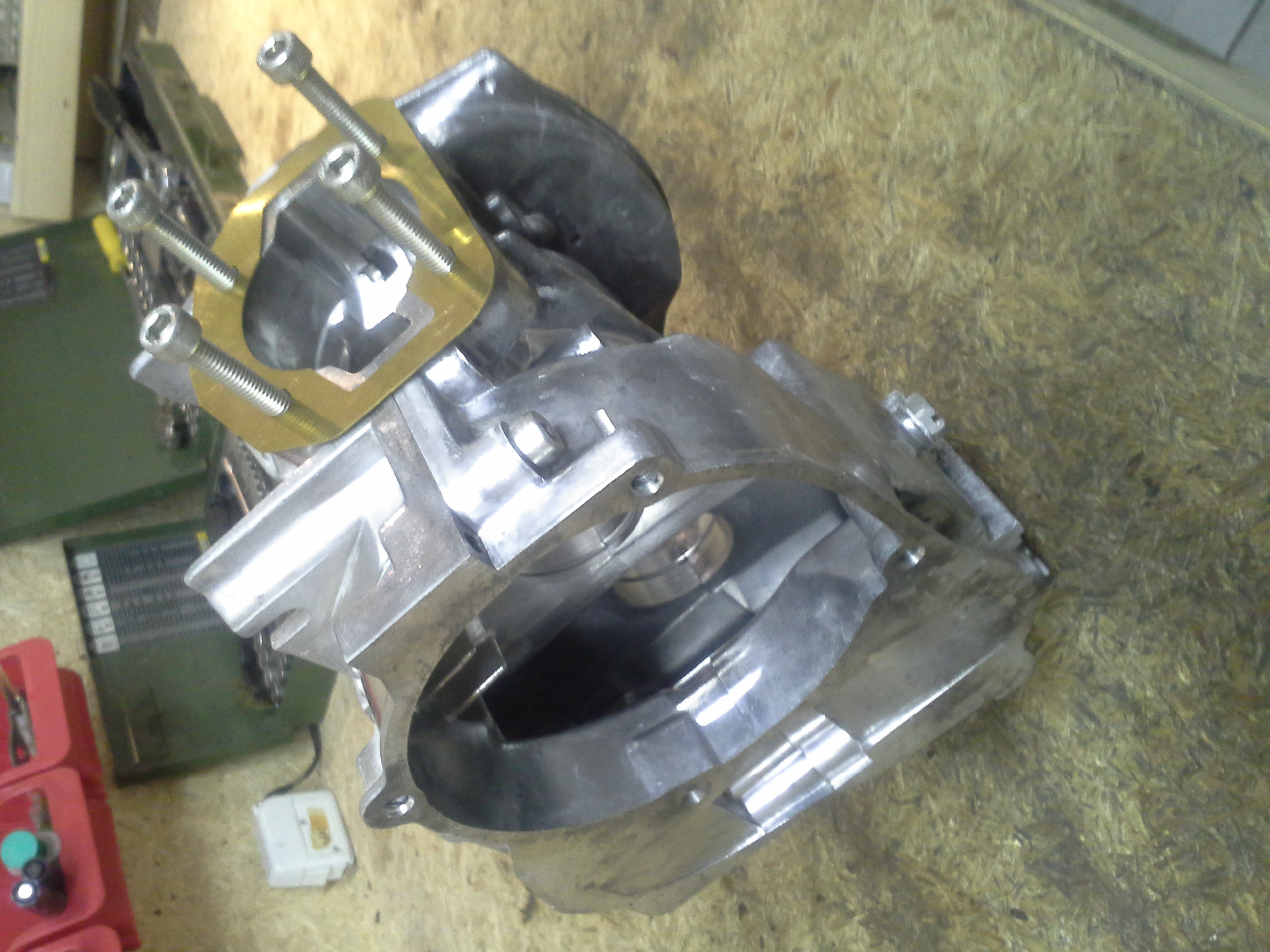 Nach dem Zerlegen werfe ich da alle Motorteile rein... KW, Zylinder, Kopf, Kupplung, Getriebe... alles klinisch rein!