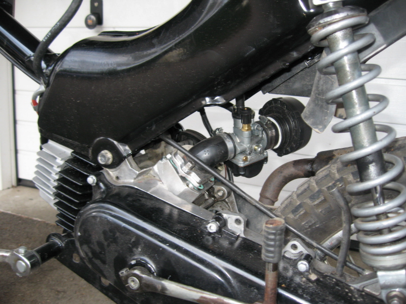 Mach den Vergaser aber leicht schräg, nach links an den ASS, sonst wird der Platz zum Hinterreifen zu klein und bekommst Probleme mit dem Luftfliter. Auch nach oben zum Rahmen aufpassen, sonst stößt der Vergaser beim Enfedern an den Rahmen. Der Alex hat übrigens die ASS aus Hartgummi. Da bin ich ein Freund von, da alles dann schön schwingungsgedämft ist. Gerade bei längeren Rennen ist mal ruchzuck was abvibriert und abgebrochen. Solltest du überlegen.