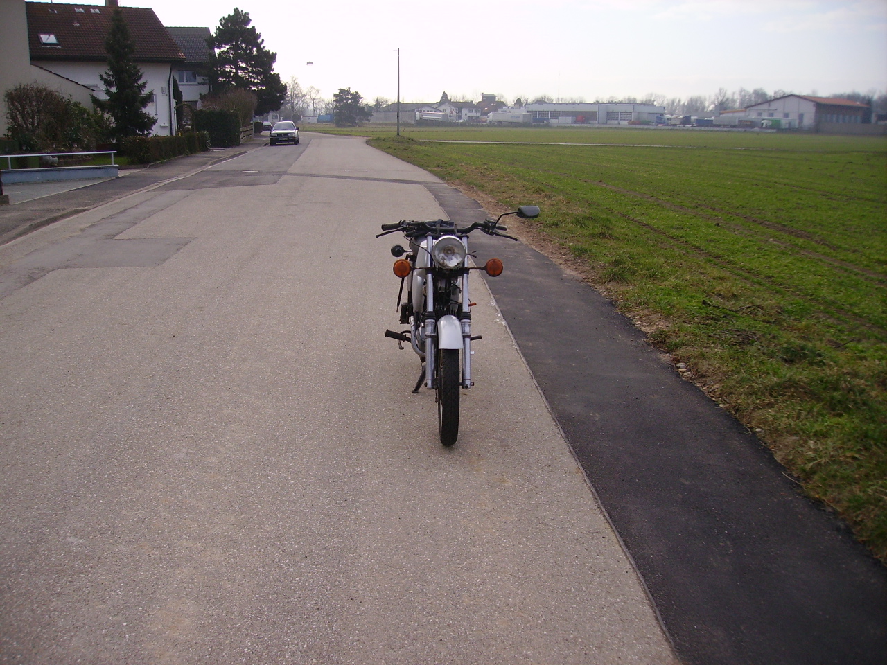 Schutzblech ist verbaut. Spiegel ist nur mal so drann, kommen ja noch andere. Habe im Lager noch Stossdämpfer gefunden, allerdings diese geschlossenen. Aber haben kaum Rost, von dem her, habe ich zunächst mal diese verbaut. Wenn diese Chrom Stossdämpfer nur nicht so teuer wären.