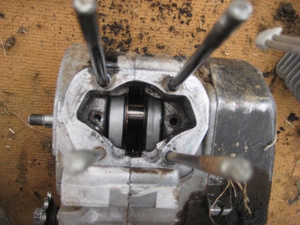 naja, in der box dan den kupplungsdeckel runtergenommen, komisch, die schrauben lassen sich ohne großen wiederstand rausdrehen... und da hatten wir das übel.... bei dem kupplungskorb ist die äußere verzahnung komplett runtergekaut gewesen und es lag eine fette schicht aus spänen im block... grund? der block lief trocken! aus der tretwelle hats immer etwas gesifft, allerdings nicht nennenswert. ich denke mal die schrauben haben sich gelöst und da lief die ganze suppe raus... sind bestimmt 4 h ohne öl gefahren...