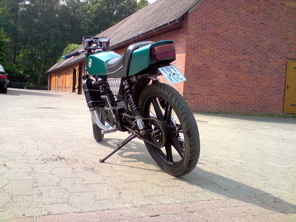 iwie müsste sie aber besser die drehzahlen durchziehen. und kurz vorm reso is nen loch wo sie einfach nicht drüber weg will und nur vor sich hin plengt. wenn man vorm hochschalten richtig drehen lässt kommt sie zwar überweg aber schön is das trotzdem nicht. ansonsten geht se ganz gut vorwärts^^ wenn man ruppig in 2. schaltet kommt sie noch kurz ca 5-10cm vorne hoch^^ mit der kühlung ohne wapu scheint auch gut zu funzen. naja, hier erstmal bilder: