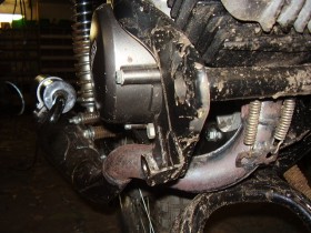 - Auf den Bilder sieht Deine Auspuffkonstruktion so aus als sollte sich der Halter an einem eigenen"Scharnier" mitdrehen: Das wird Dir in Kürze den Krümmer abreißen.