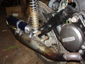 Das mit Dem Auspuffhalter ist nur eine Konstruktion für ein zweites Federbein,kann man so auf den Bildern nicht erkennen.Funktioniert 100%ig.