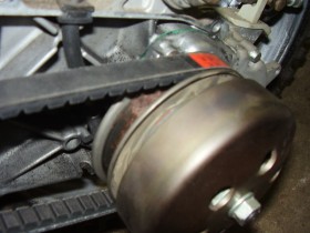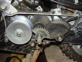 Die Variohülse kann so bleiben wie sie ist.Die Steigscheibe hat original eine Verzahnug,für die PX muß aber ein 16er Loch in die Mitte.Bohren geht nicht,weil das Zeug ebenfalls zu hart ist.Hab mit dem Dremel und einen Schleifausatz die Zähne weggeschliffen und ein passendes Loch draus gemacht (Geduldsarbeit,aber 10Min haben gerreicht).Wenn man jetzt alles auf die Kurbelwelle gebaut hat,wirds wohl so sein,daß die Abdeckung der Variomatik nicht mehr passt (je nach Deckel - das schwankt).Bei mir hab ich 2mm vom Rand abgedreht und schon gings.Kann man auf dem Bild erkennen-der Teil welcher nicht glänzt ist abgedreht.