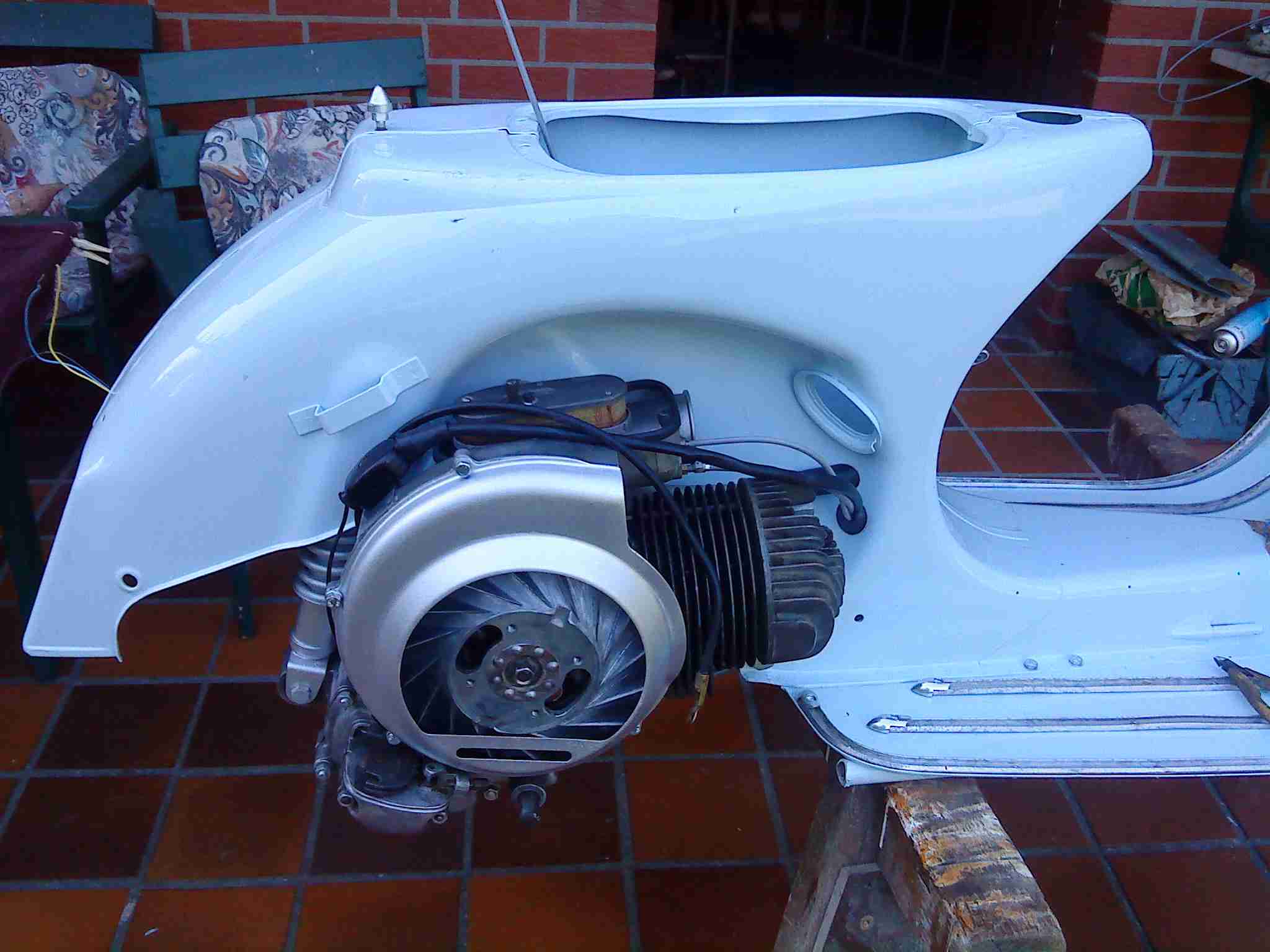 Ein paar Dinge fehlen halt noch- aber Vespatypisch: Sprit drauf, 2x Treten +läuft! Bin eben schon mal ne Runde auf dem Hof gefahren- Joa, 125ccm und schnurrt wie ein Kätzchen.. :D