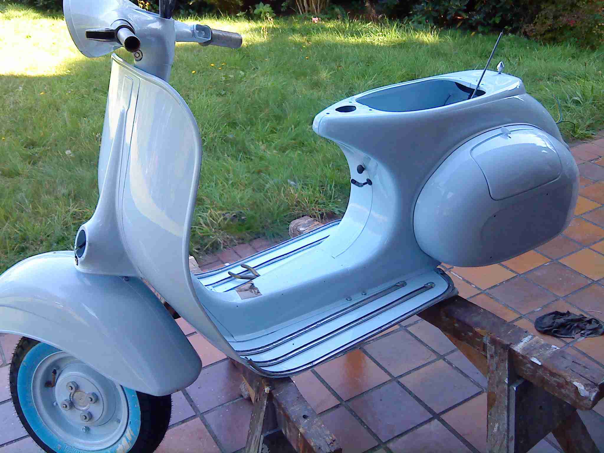 Farbe ist übrigens ein ganz helles Blau. Die Kiste ist lt. Vespa Typenklasse / Fahrgestell ein Baujahr 1964...