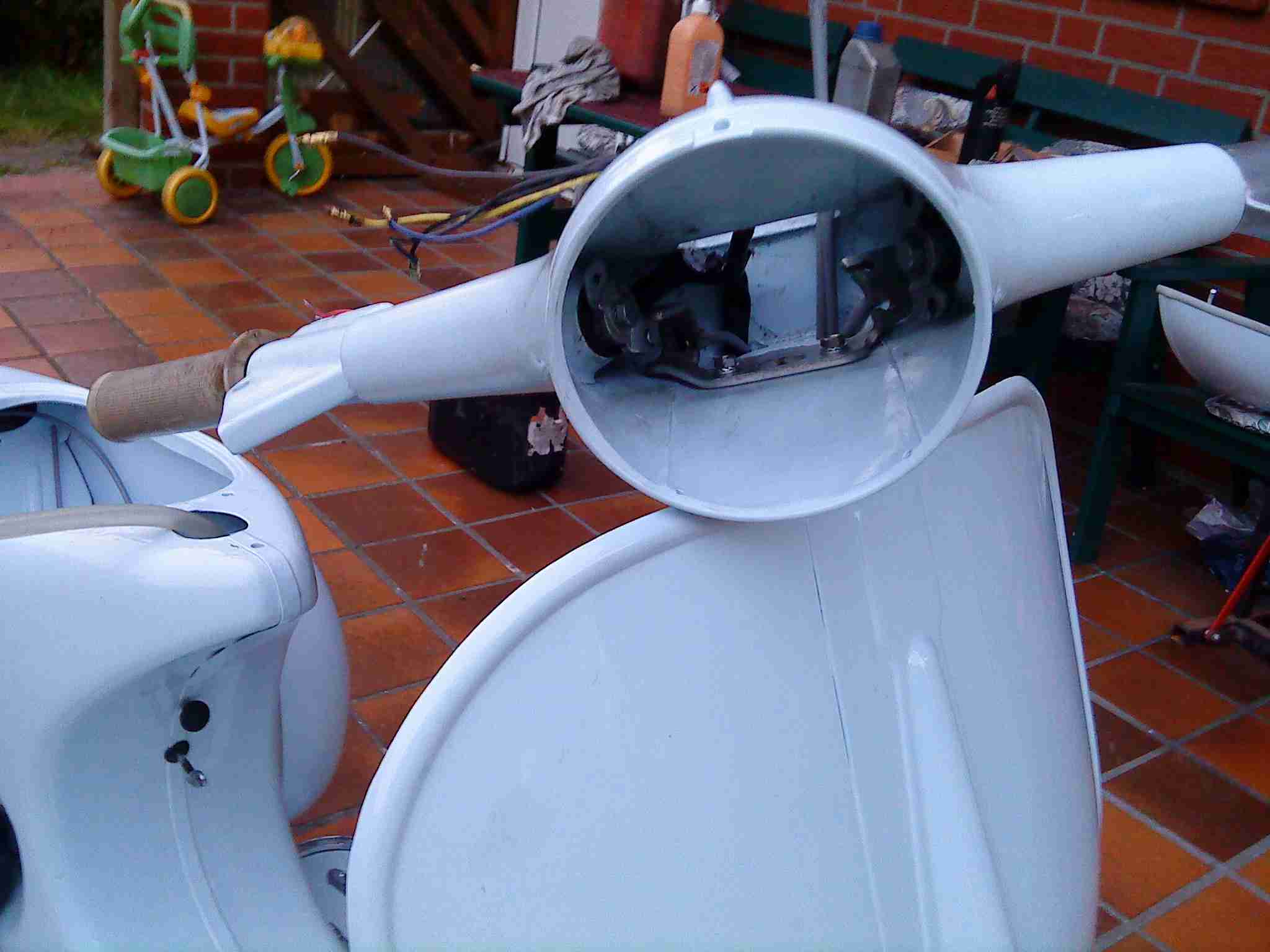 Ordendliche Arbeit, aber durchs neulackieren hast du dir nen ultimativen Wertverlust eingehandelt... Originallack (auch wenn arg ranzig) wird von den Vespajungs verehrt + wenn sogar noch die originale Einfahrvorschrift am Beinschild war....