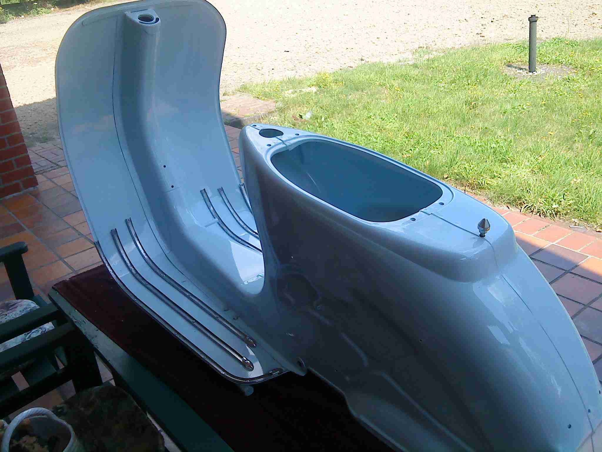 Farbe ist übrigens ein ganz helles Blau. Die Kiste ist lt. Vespa Typenklasse / Fahrgestell ein Baujahr 1964...