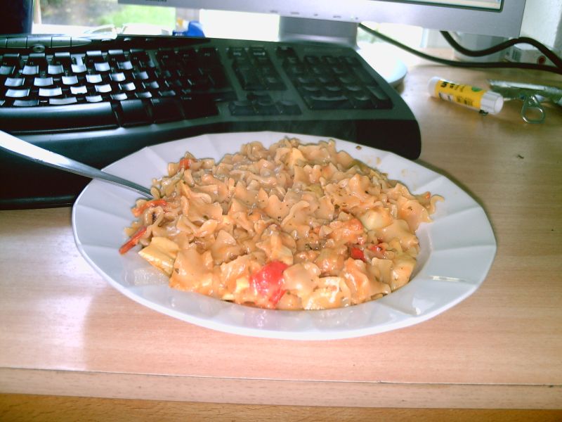 heute mittag gibts sone fertigpfanne pasta in pilzsauce