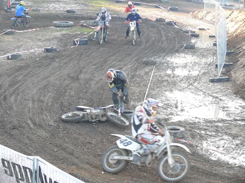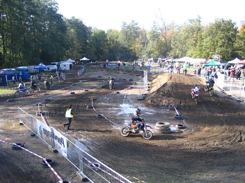 bin da auch mal rausgefarhen aus der strecke ausversehen. also über die holzpflocken bin ich gut gekommen, aber da war dann auch nen motorradreifen gelegen, als ich über den drüber bin bin ich übern lenker drüber und das mofa auf mich drauf