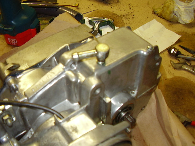 Hab gerade mal,zwecks Abbau von Alkohol und Kopfweh,ne neue Entlüftung fürs Getriebe gebastelt (am Ersatzmotor,falls das Zusammenspiel von Hirn und Händen noch nicht geht).Ist ein Benzinförderpumpenanschluß mit 6mm Innendurchmesser