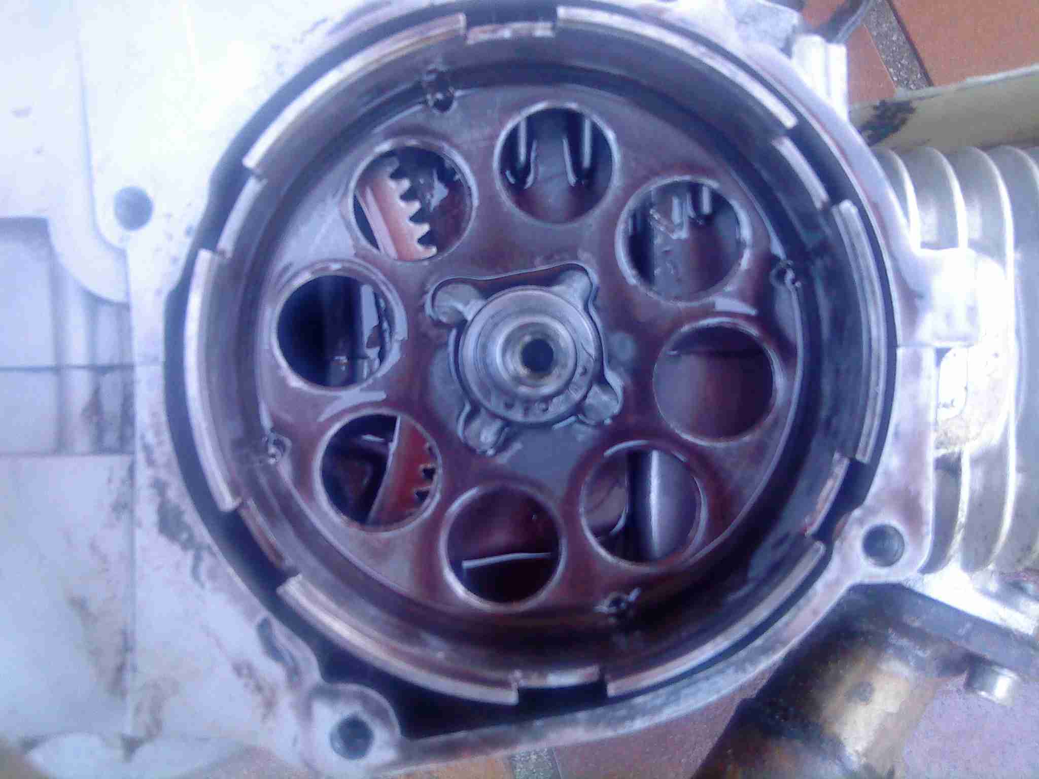 4.Die Kupplung: hab die Federn nach Gefühl vorgespannt,mit dem Resultat:die Kupplung spinnt.Mal kuppelt sie früh ein,mal so wie sie soll,mal irgendwie garnicht.