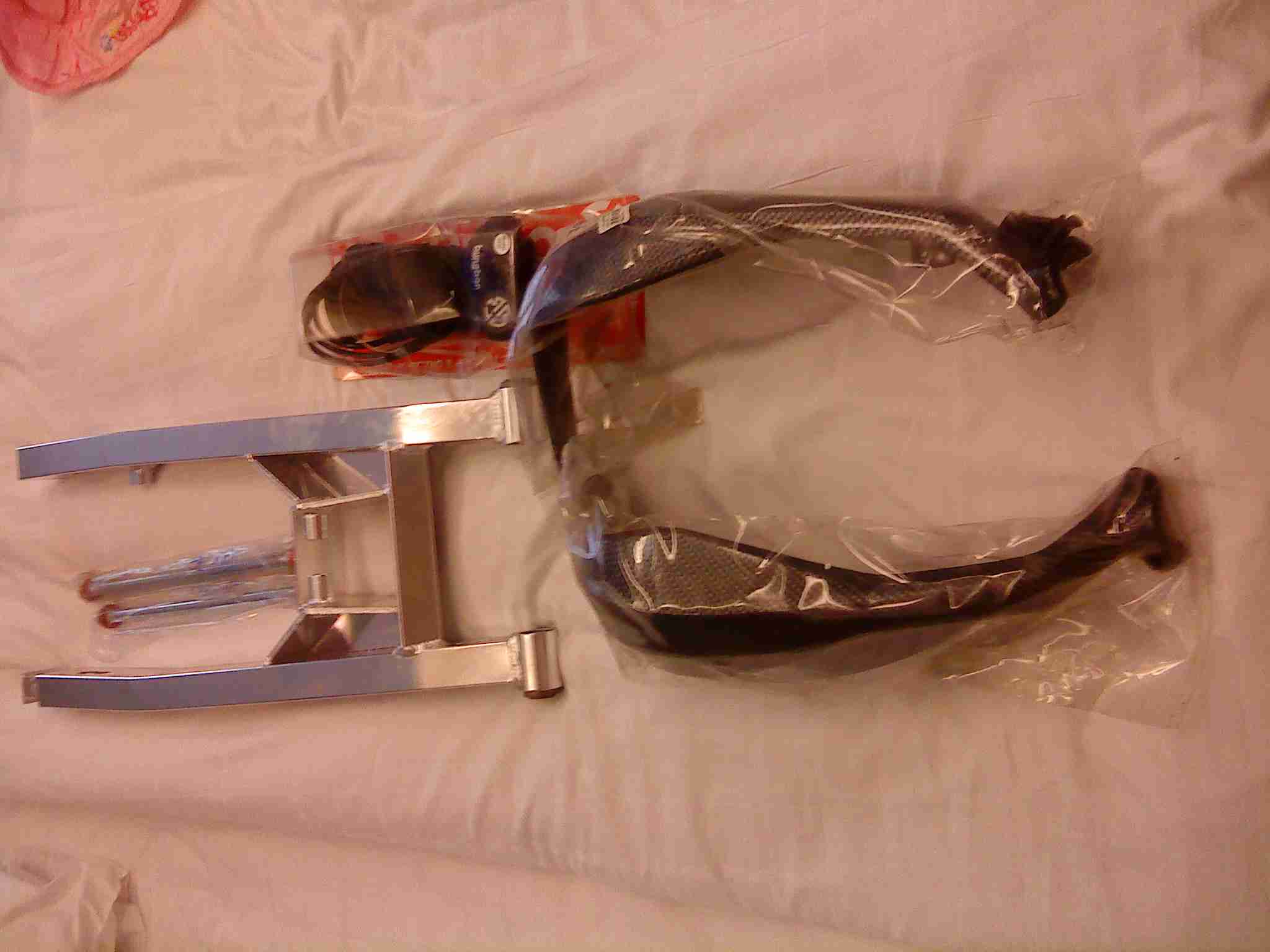 Radsatz bei Happy für 80€, Gabelbrücke für 35€, Scheibenbremse 220mm, Dämpfer hinten (zusammen 75€)- der später durch den WP ersetzt wurde, die Schwinge einer Honda Sonic von Yoshimura für 35€, 70er Kettenrad und Kette zusammen für 30€. Die alte vordere Bremse wurde für die Hinterradbremse verwendet, Hulk hat dann noch bei seinem Dealer eine Sahlflexleitung, Bremspumpe und Zange organisiert, Sitzbank und div. Kleinteile besorgt- alles in allem bestimmt für 150-200€.