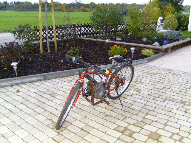 hier mal ein kinderfahrrad etwas verlängert mitm prima 5 motor, die felge hats leider nicht lang mitgemacht ^^