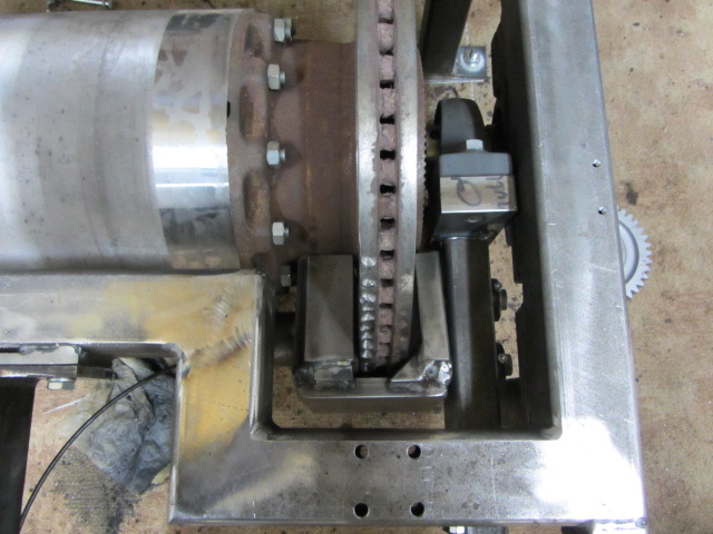 Der Bremssattel ist selbst gerfertigt aus eisenplatten zusammen geschweißt, da mir ein LKW sattel mit 4 riesigen Kolben zu mächtig erschien. Auf den Bremskolben habe ich nur einen O-Ring drauf gemacht. Vielleicht sollte man da einen Rechteckring speziell für Bremskolben probieren??? Der Geberzylinder ist ebenfalls selbst gemacht und hat den gleichen Kolbendurchmesser wie der nehmerkolben. Da wäre es vielleicht sinnvoll den größer zu machen, um die Dosierbarkeit zu verbessern. Es fehlt also noch einiges an Feintuning. Einfacher ist in der tat die Trägheitsrolle, zumal ich aber auf der Rechten Seite die Welle etwas raus stehen lassen habe, sodass hier eine Schwungscheibe aufgesetzt werden kann. Dann reicht die Trägheit auch dicke.