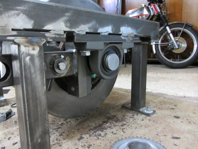Hinten an der Rolle ist doch garkein Platz mehr,oder flanscht du die in fahrtrichtung rechts da an den wellenzapfen?