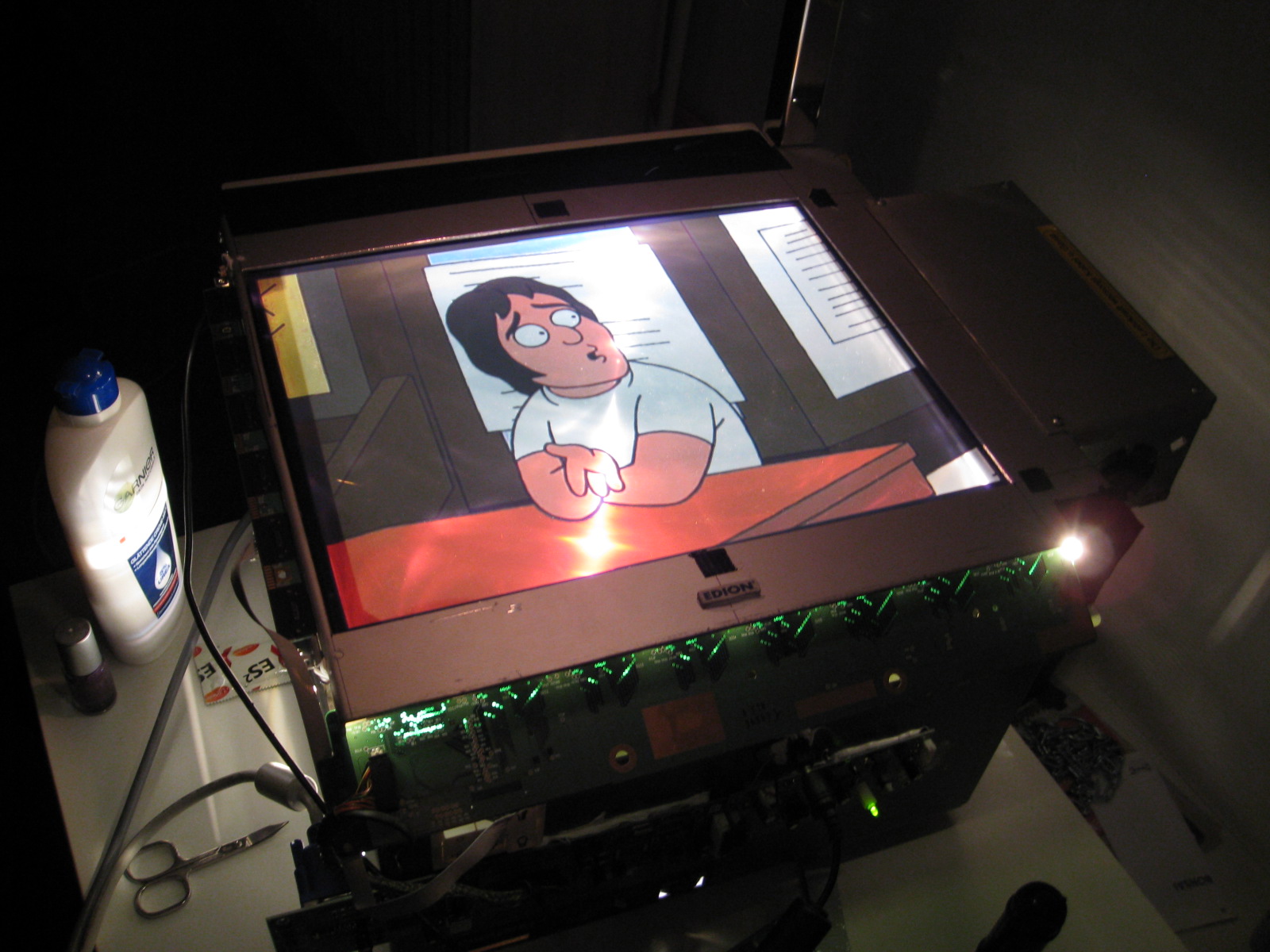- Extra Walzenlenlüfter für den Bildschirm(der schmort sonst durch, die normale Hintergrundbeleuchtung sind ja eigentlich Kaltlichtkathoden und nicht irgendwelche 250W Brenner.)