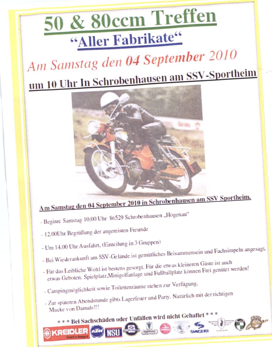 50 & 80ccm Treffen Schrobenhausen 27. Juni 2010, 23:34 Veranstaltungsname 50 & 80ccm Treffen Schrobenhausen Hab ich gestern bei uns aufm Mopedtreffen mitgenommen. Bilder 232540.jpg 151,26 kB, 933×1.192, 667 mal angesehen Werbung zur Finanzierung des Forums
