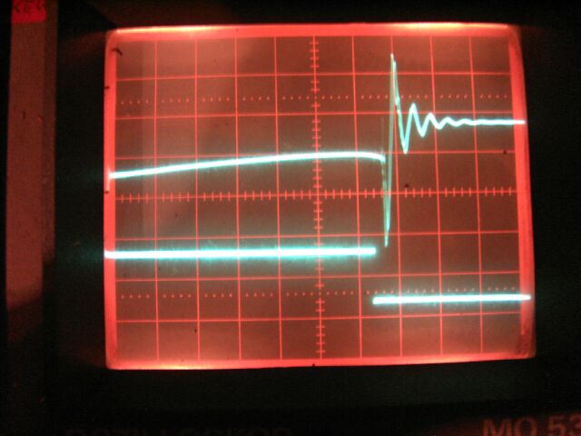 Auf meinem Oszi-Bild sieht man allerdings nur einen einzigen Zündimpuls und den Wechsel von H auf L, das automatische zurückspringen von L auf H passte sozusagen nicht mehr aufs Bild.