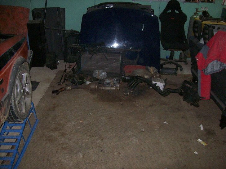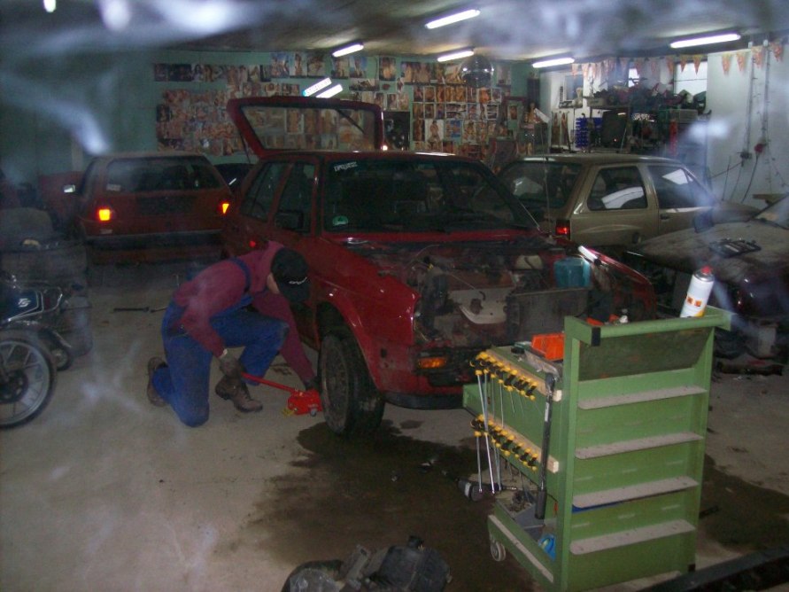 Heute haben wir den Wagen soweit komplett zerlegt.Morgen kommt noch die Pedalerie und die Lenksäule + gesamter Elektrik raus.Der Golf3 hat keine hochwertige Sonderausstattung,was den Umbau erleichtert: Kein ABS,Keine Klima etc.Nur die Servolenkung möchte ich übernehmen.