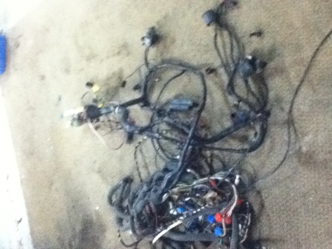 Heute haben wir den Kabelbaum rausgerupft,die Pedalerie ,das Fahrwerk und die gesamte vorderachse samt Lenkung.Letztes ging ganz gut durch die 90°Winkel-Hebebühne... Foto oder Video müsste karsten haben.