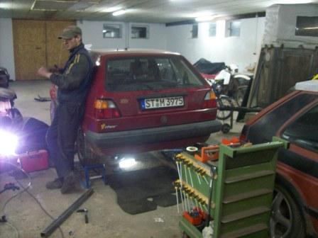 Morgen kommt hoffentlich Auspuffanlage rein.Karsten hat mir heute schon ein distanzstück gedreht,damit ich 16v Endschalldämpfer fahren kann.Ist mMn der geilste ESD am golf 2 :love: