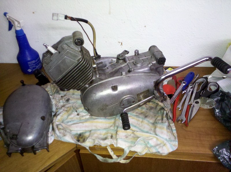 Heute war es dann soweit ich habe den Motor ausgebaut, herrlich wenn das Öl ablassen nicht so lang dauern würde, wäre das eine Sache von 20 Minuten. Wirklich schön das ganze!