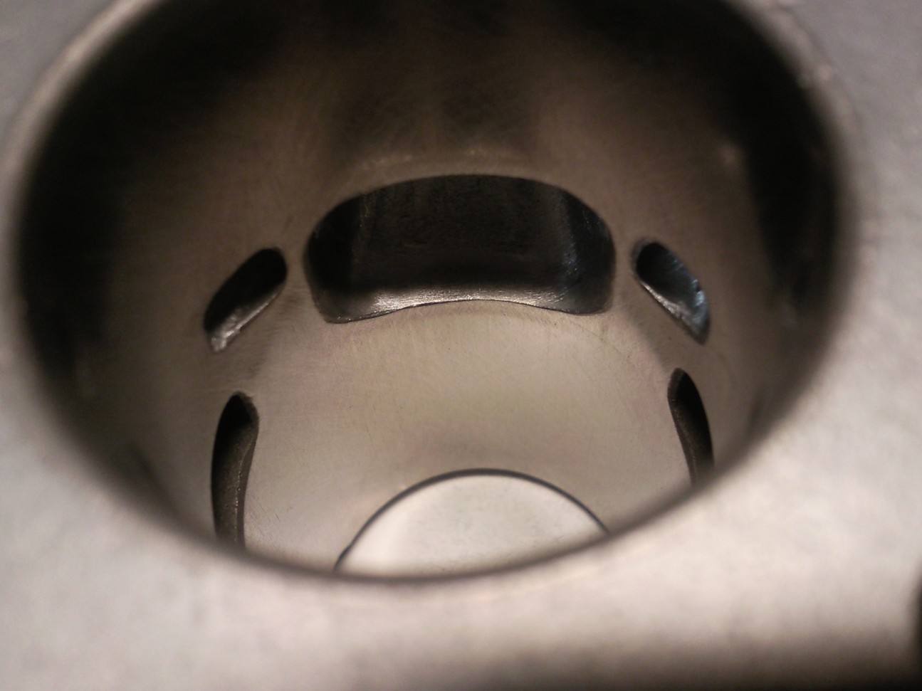 Nächste Frage: Im Kolben sind 4 Löcher, für die Boost Ports, kann oder sollte man die Vergrößern oder jeweils zwei miteinander Verbinden? Verlieren dann vieleicht die normalen Überstömer zu sehr an Druck wenn die Stützkanäle größer werden?