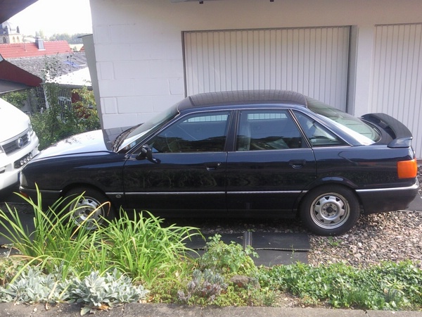 Mittlerweile stapeln sich hier so langsam die Teile: Rückleuchten von B4 Avant, weisse Blinker für vorne, Luftfilter, Stoßleisten rundum, Zündkerzen,Verteiler mit Finger,Ölfilter,und der Auspuff(kein BN-PIPES). Dann muss der Heckspoiler verschwinden und die Typenbezeichnung auf der Heckklappe.