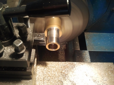 Erstmal habe ich sowohl Schmids als auch meine Kurbelwelle gerichtet (geht ein bisschen eng zu auf der Drehmaschine..)