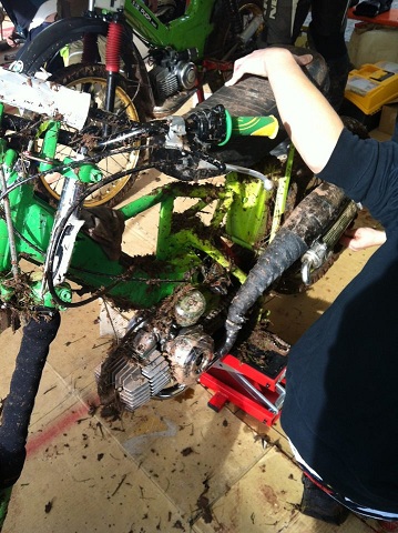 Am Anfang war alles super, als Qualifying mussten wir mit Fahrerwechsel 2 Runden auf der Rennstrecke drehen -> 2t beste Zeit -> 2ter Startplatz! Doch mir war klar das wir uns darauf nix einbilden konnten. Die ersten 16 Runden konnten wir den 2ten Platz halten doch dann spürten wir deutlichen Leistungsverlust, also raus in die Box und nachgeschaut. Etwas blöderes hät ich mir ja echt nicht vorstellen können..! Wir hatten auf einmal ein Loch im Tank aus dem das Benzin nur so raus floss, natürlich immer schön auf den Motorblock der schon gut qualmte. Daraufhin war uns klar dass dieses Rennen an dem Punkt für uns gelaufen war. Ist ziemlich enttäuschend nach der ganzen Vorbereitung nur Platz 14 von 16 zu erreichen. Aber wir sind davon überzeugt das es nächste Saison besser läuft. Wir haben ja wieder genug Zeit um uns vorzubereiten :D