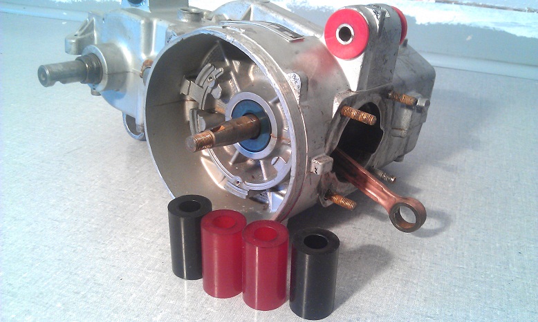 mir ging das gebaumel von dem Motor im Rahmen meiner ZD schon immer auf die Nerven. Mitterweile verkaufe ich Verstärkte Motorlager aus Polyurethan. Mit diesen Buchsen wackelt nichts mehr und die Kette läuft selbst bei stark getunten Motoren noch schön gerade,wenn man Gas gibt.