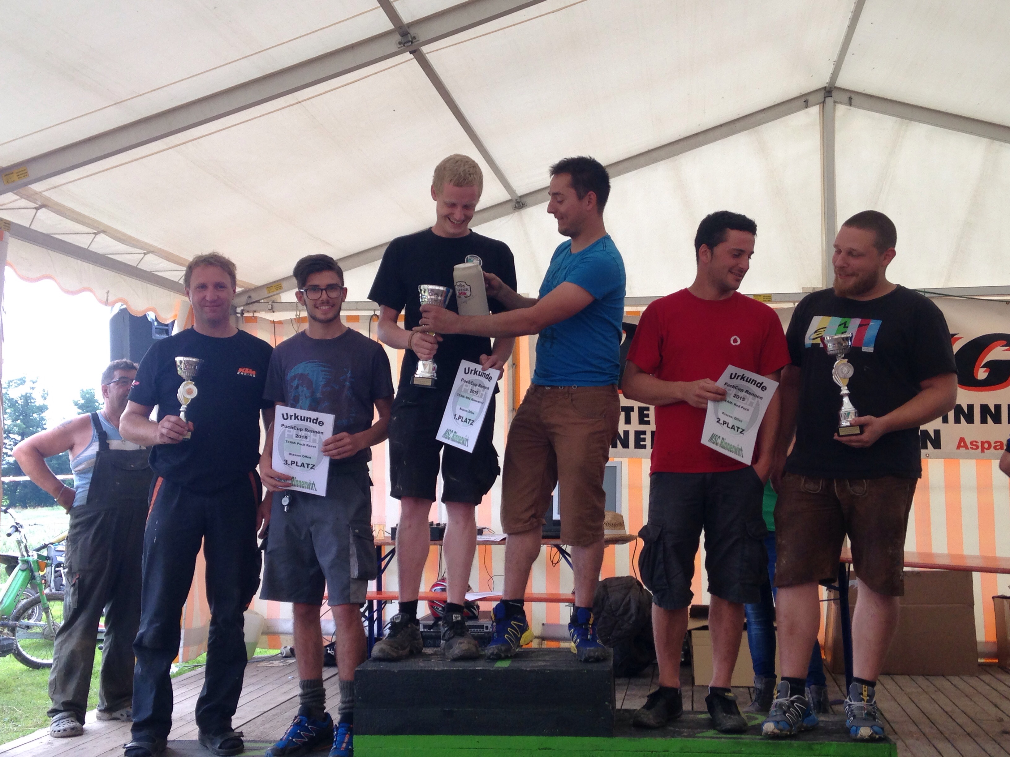 Also wir erreichten den 3ten Platz in Hofing, unsere Probleme entstanden mit den Drecks Ritzeln und der Kette. Mir hat's 3 Ritzel zerfetzt, und 10 min vor Schluss noch eines und da hat's mir die Kette so ein gezogen, dass es Schalt- und Ritzelwelle so auseinander gedrückt hat, dass das Gehäuse gerissen ist. Naja jetzt baue ich schnell nen neuen GME mit dem Athena vom