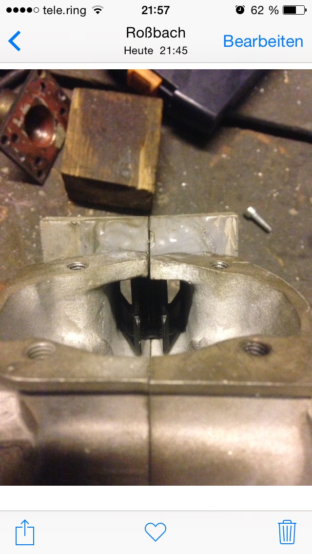 Das letzte Bild ist der letzte Stand, die ausnehmung vergaserseitig ist für die Anschläge der Membranplättchen, da der Kasten ziemlich eng gebaut ist.