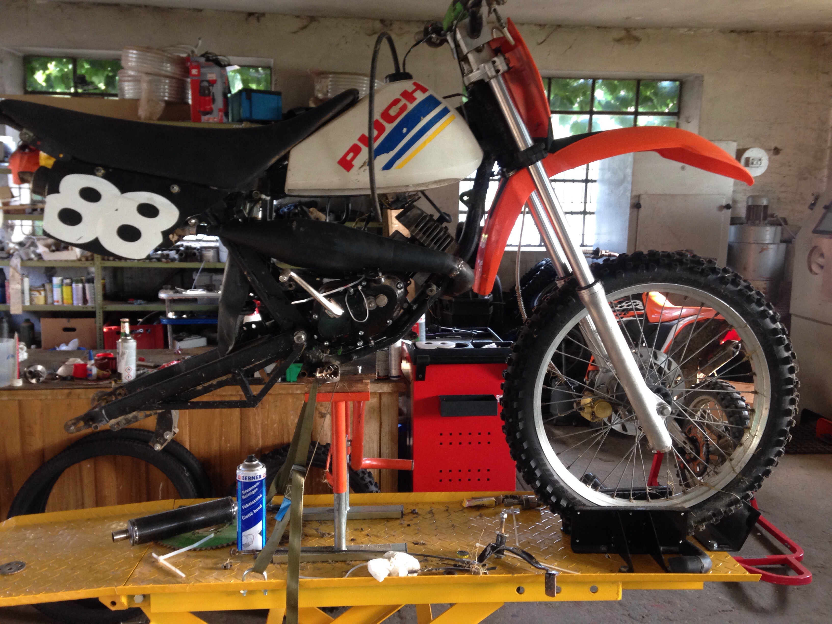 So heute mal das Rennmoped auf die Bühne gestellt, und die Auspuffanlagen ein wenig probiert. Also meinen Prorace 2 kann ich ranstecken und muss nur nen neuen ESD dran machen, der c16 von vorher geht auch mit Flansch umschweissen- da der Athena nen geraden hat und der Supermaxi schräg war, und die R1200 Anlage passt auch fast Plug&Play dran. Wenn von denen keiner passt, hab ich noch nen Yasuni c30, der etwas mehr Arbeit zum anpassen ist, aber auch mehr als machbar ist :D