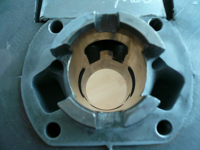 Das bringt gleich 4 Vorteile mit sich, ausbuchsen ist idR. günstiger als Neu zu beschichten, man kann den Zylinder nach 10-15 Rennstunden (falls er ausgefahren ist) bei mir für 25 € aufs nächte Maß honen lassen, man bleibt unter den 50 ccm und vorallem lässt sich dann mit etwas Aufwand auch ein geteilter Auslass realisieren, was wiederum ein "kleines" Leistungsplus mit sich bringt