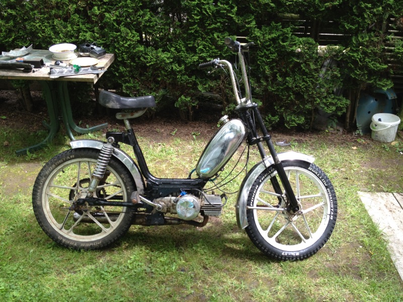 Zum Schluss wurde dann ein Parmakit und Bing 21/20 verbaut und sie kam dann das erste mal zum laufen und bis zum Mofarennen in Wahlen