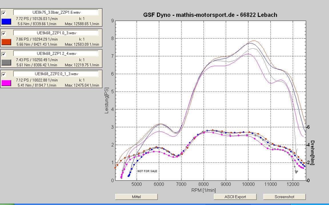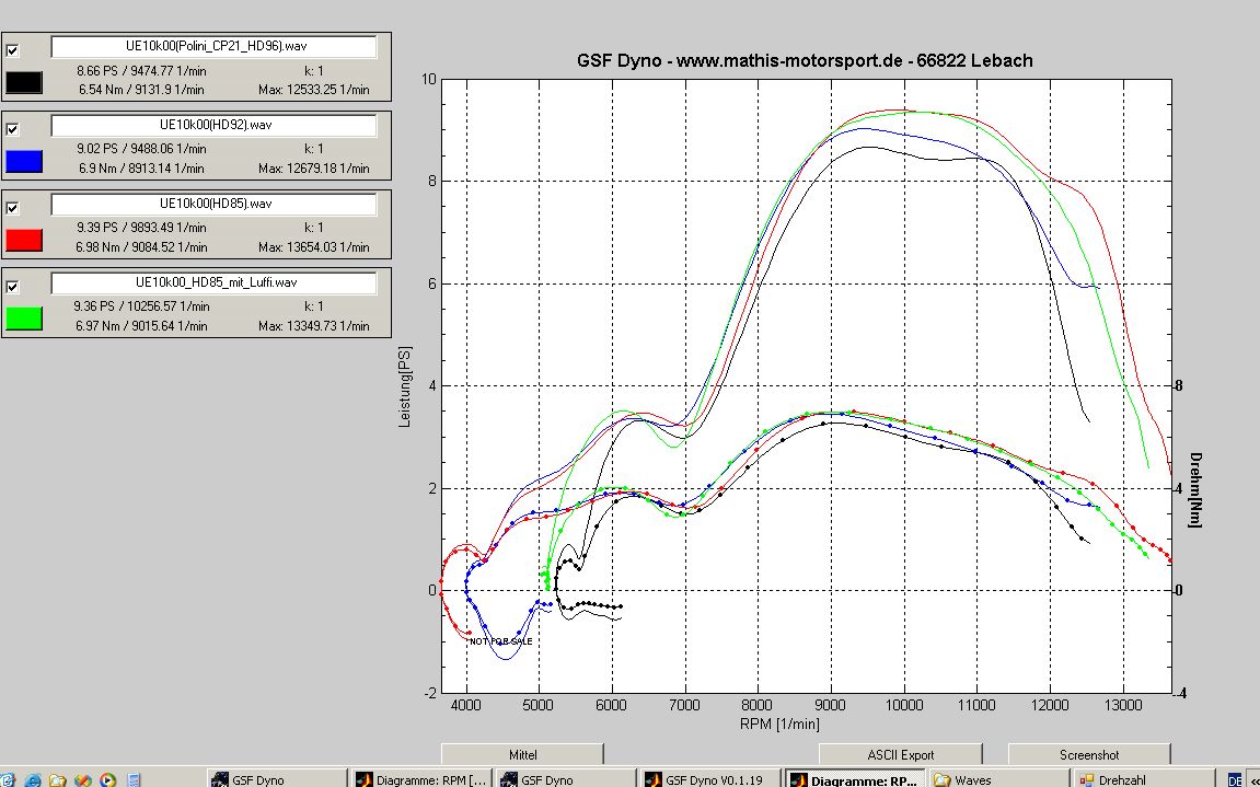 Gestern mal mit dem Ersatzzylinder (nahezu originaler Parmakit) auf dem Prüfstand gewesen.
