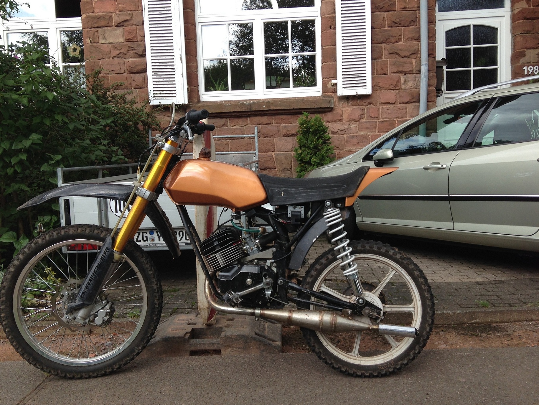 was sich tun lässt. Durch Zufall dann auf eine Kreidler 125 Enduro gestoßen, Totalschaden, aber die Gabel sah nicht verbogen aus. Steuerrohr bei
