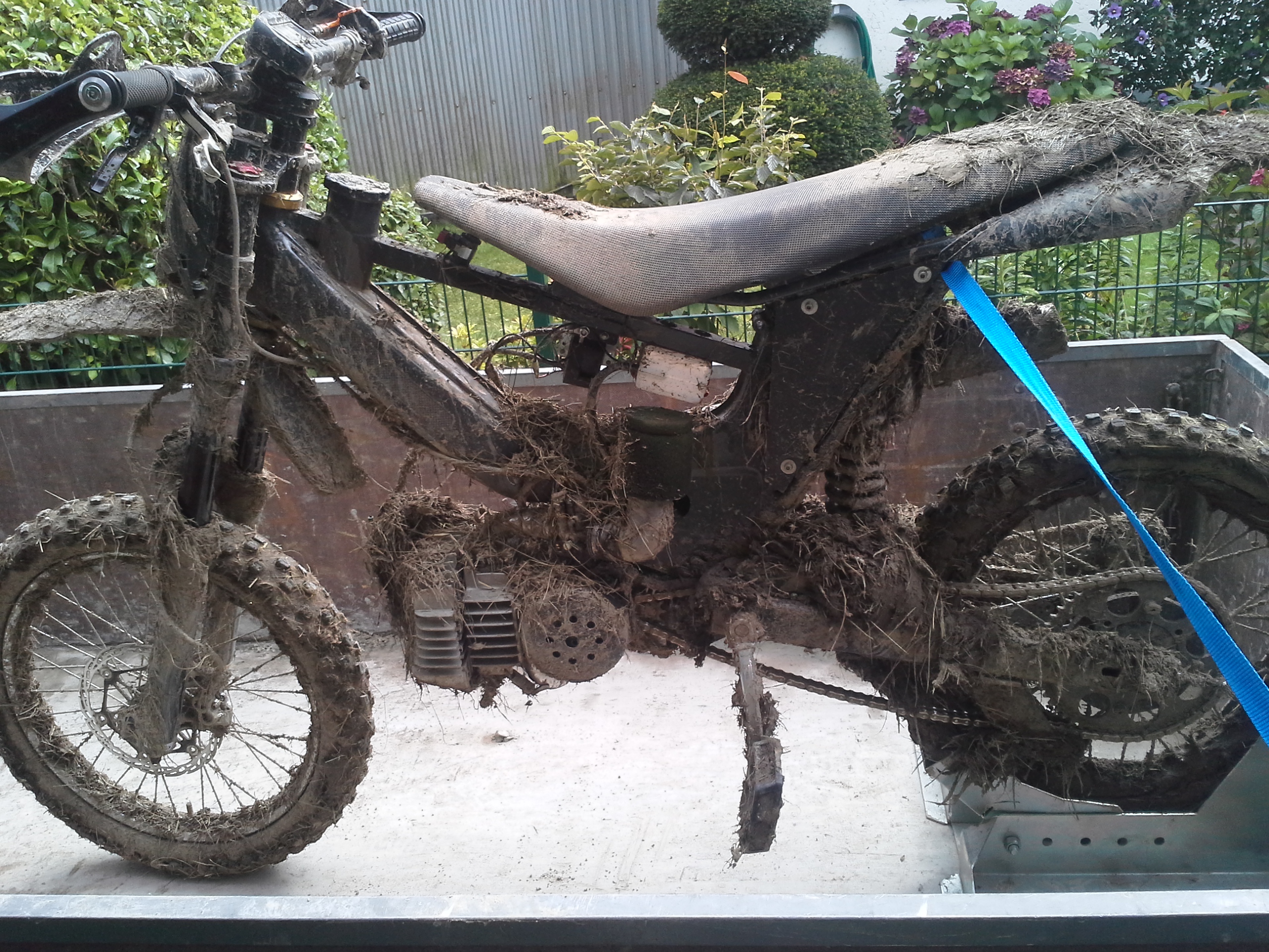 Wir haben Federelemente aus einer YZ80 verbaut, auf denen sitzten normal die 15 jährigen Buben mit ihr max. 50 kg Fahrergewicht und nicht wir alten Fettsäcke.
