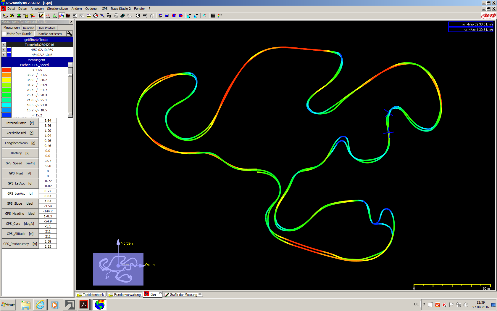Die Farben stellen auf dem GPS-Diagramm die unterschiedlichen Geschwindigkeitsbereich dar... je blauer= langsam, je roter=schneller...