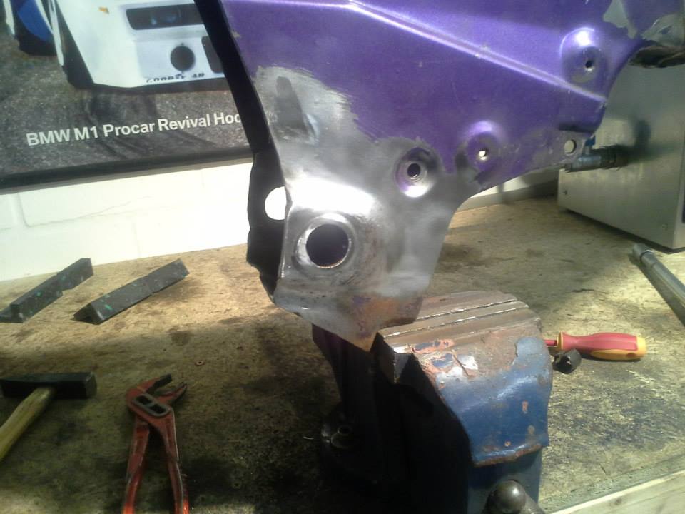 Und damit das ganze auch mal farblich etwas ansehlicher wurde, wurde der ganze lila Lack runtergeschliffen... und wie der Lack runter war, haben wir für einen Moment echt überlegt, die geil glänzende Blechoptik beizubehalten und einfach Klarlack aufzutragen... :) ...McLaren F1 lässt grüßen!...