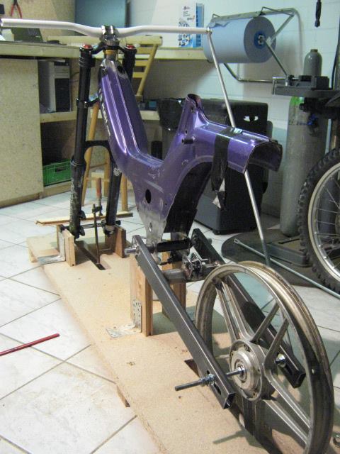 oh, sehe ich da eine marzzocchi bomber als gabel? tolle idee, die funktioniert gut. hatte ich auch mal für 2 rennen im mofa, allerdings ist die dann unten aufgeplatzt. eigentlich schade. bin jetzt auf kx80 telegabel umgestiegen