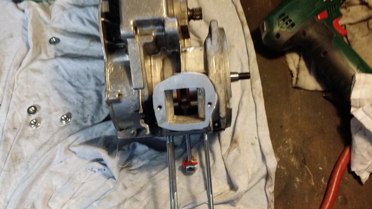Da ich ungefähr weiß, was ihr bei Dieter gelassen habt- hier mal ein paar Bilder von seinem Motor: Das Gehäuse wurde angliefert, ebenso der Schrottauspuff. Ich habe grob einen vernünftigen Stutzen drangebraten- geht aber überhaupt nicht das Ding- also: Felix alias Zündappreiter- Pott für Puch- mit seinem Motor und meinem Puch Maxi N-Rahmen grob angepasst, und an mein Moped zwecks Test geschraubt- Tja: Willkommen im 21.. Jahrhundert der Motorentechnik...