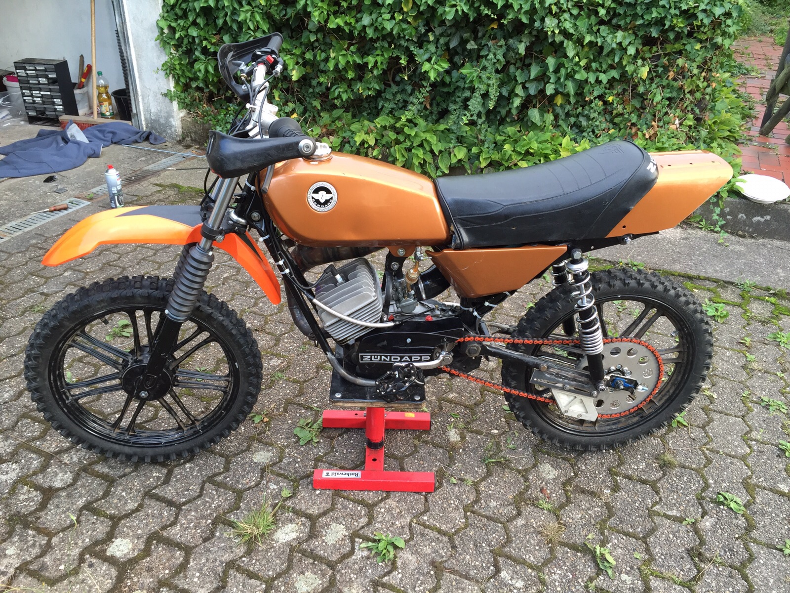 Zum Fahrwerk: Ja es ist hart ein Zündapp Original Fahrwerk so hin zu bekommen das es wettbewerbsfähig ist und man mit "Cross"Fahrwerken mithalten kann.