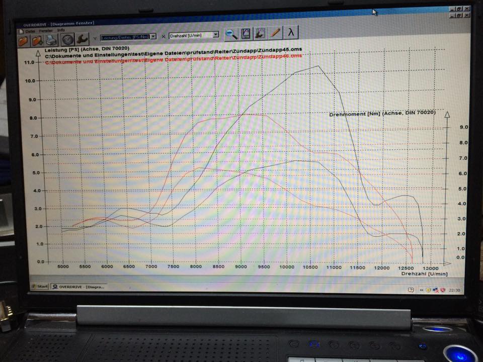 Wenn ihr im Winter noch mal ein wenig aufrüsten wollt mein Geheimtipp! Das Diagramm ist von einem Zündapp Membraner wo der Auspuff mal gar nicht passte und ein Prototyp her musste. Dieser liegt aber in deiner jetzigen Leistungsliga und man kann schön sehen wo die Reise hin geht ;)